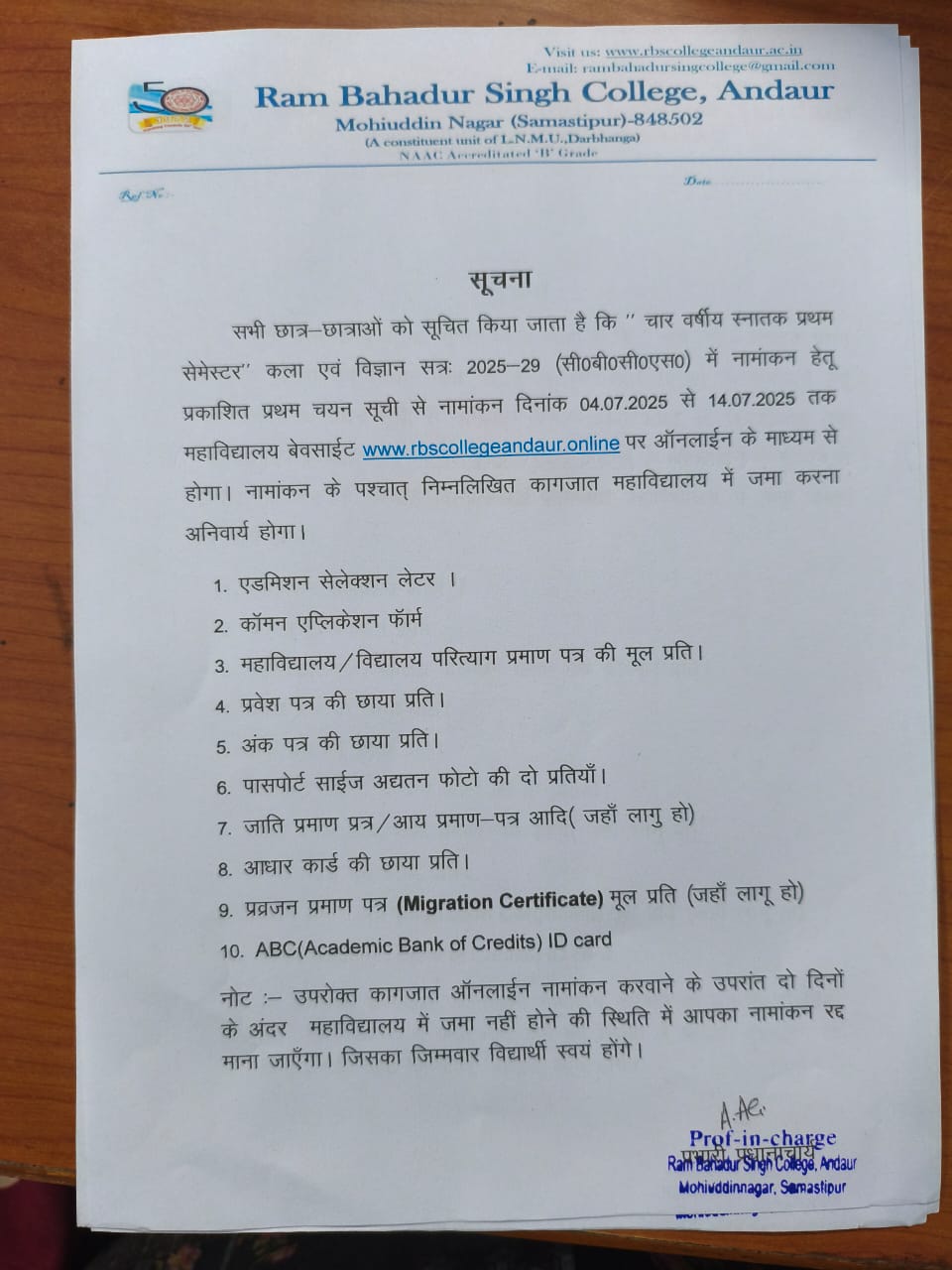 NOTICE REGARDING UG 1ST SEMESTER (2025-29) IN ADMISSION